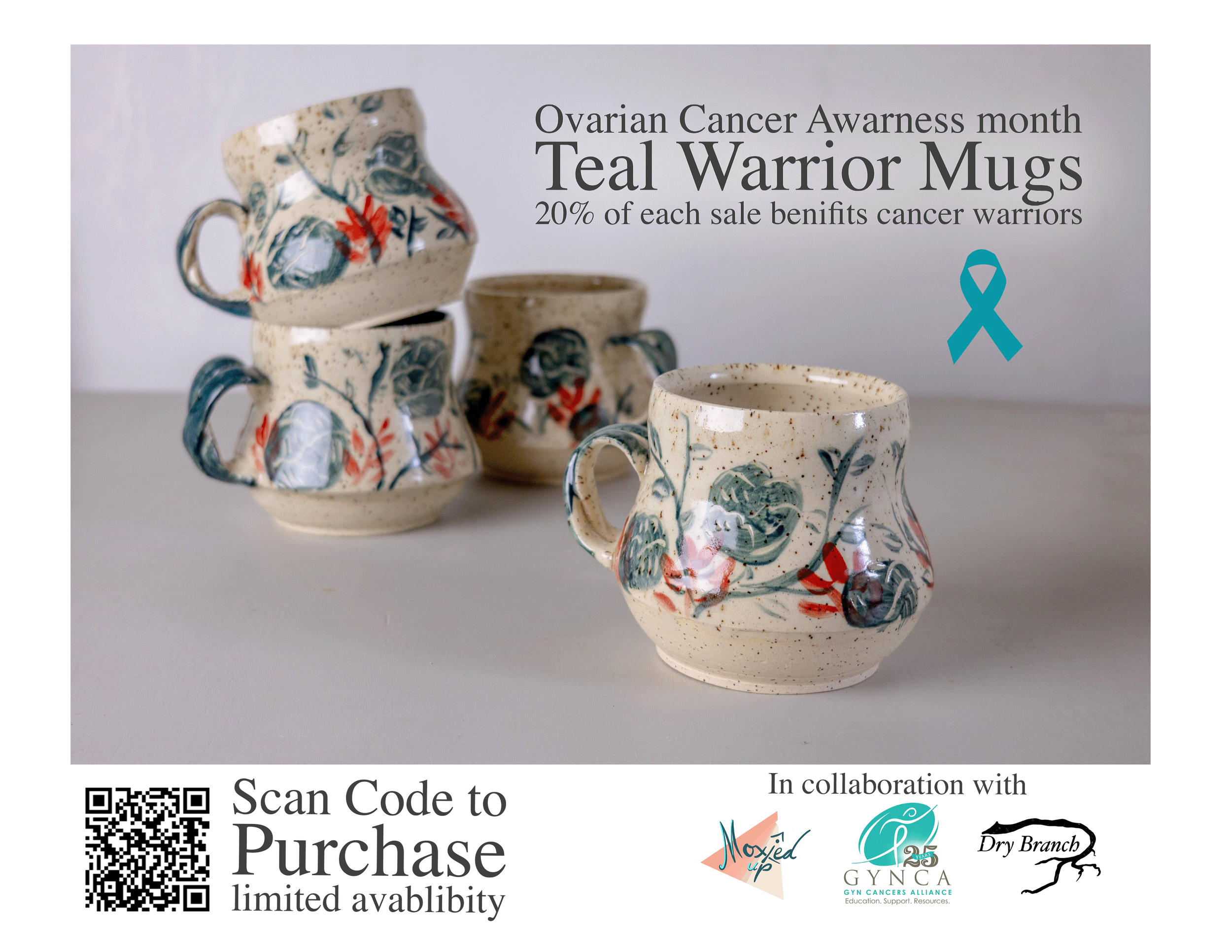 September 20, 2025...Rick and Martha Gossett brought their 1995 Mustang GT convertible to the Joplin Mercy Cancer Center parking lot. Dani’s dad, Dave Gossett, was the previous owner of this car. Rick restored it. The car was useful to tell a story of moxie. Dani was her dad’s caregiver while he endured Alzheimer's. After he passed, Dani was diagnosed with ovarian cancer. Though Dave succumbed to the disease that invaded his brain and devastated his body, Dani survived her ordeal. The three family members shared good memories and spread awareness of ovarian cancer and the organizations who are so supportive. There were also on display the limited edition Ovarian Cancer Awareness Mugs made by Dani’s son and caregiver, Chadan, who is a local artist/potter (see drybranchhandmade.com). It was so important to Dani to share her gratitude for Mercy’s part in her journey to better health and for how the Mercy Team helped her Dad. The Mercy teams in both Joplin and Springfield provided and are still providing the Gossett family great health care services with staff members that have become more like family than just caregivers. This opportunity to give to Catherine’s Cupboard was a great way to ensure Mercy employees are taken care of in their time of need. There is information about Catherine’s Cupboard at mercyhealthfoundation.net.